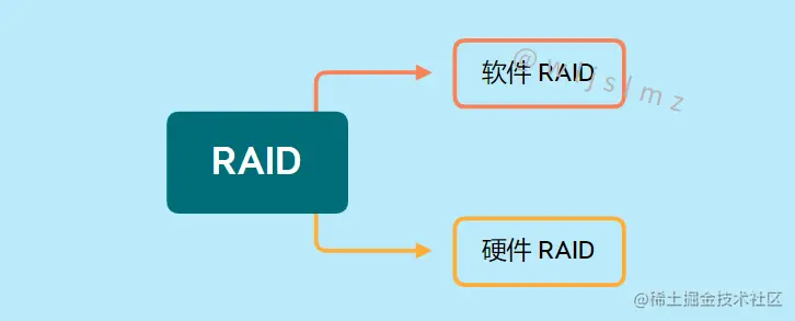 RAID 可分为软件 RAID 和硬件 RAID,在软件 RAID 中,内存架构由操作系统管理,在硬件 RAID 的情况下,磁盘内有一个专用控制器和处理器来管理内存。