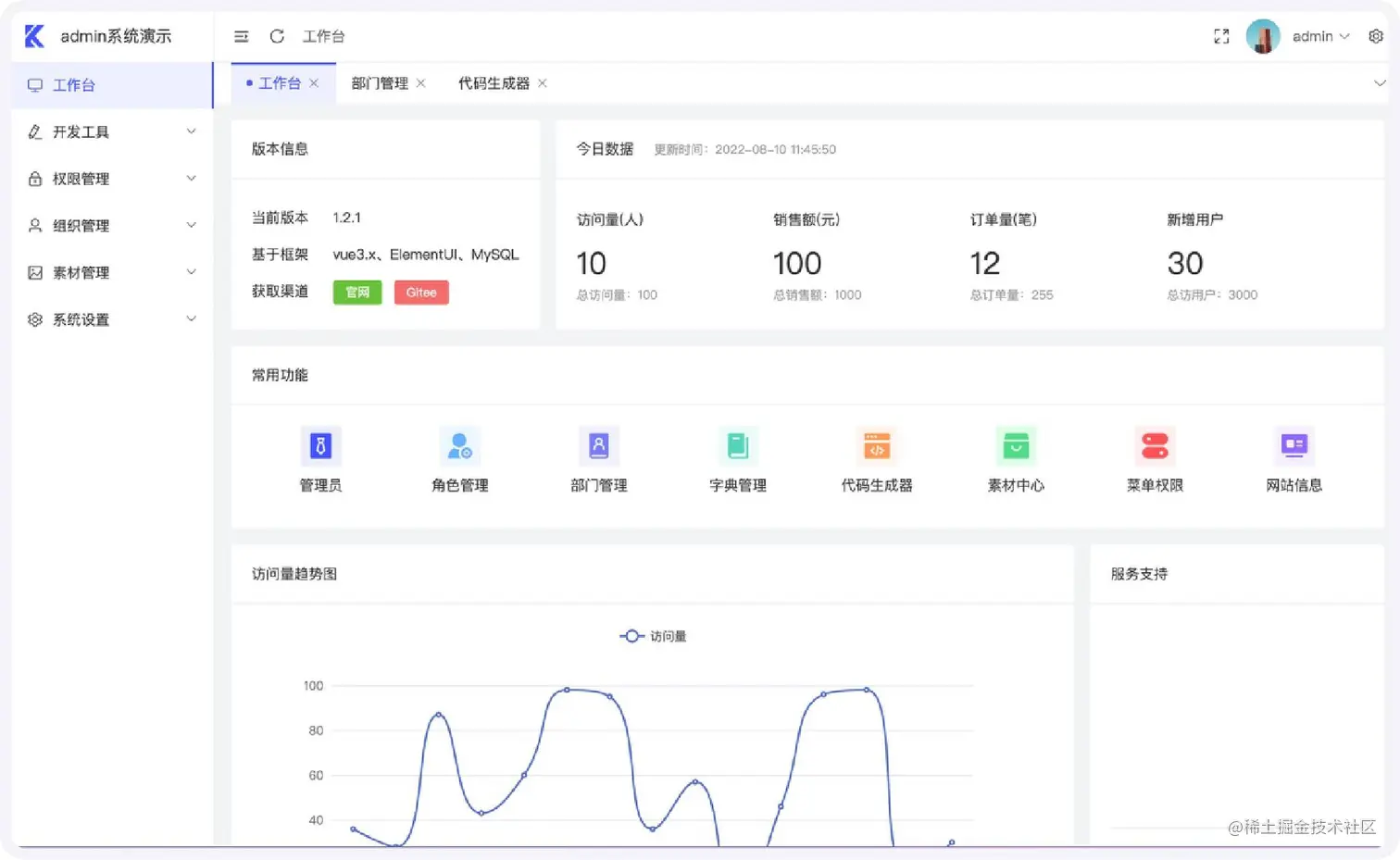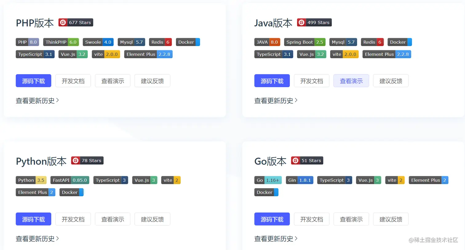 likeadmin目前有PHP、Java、Python、Go四个版本,感兴趣的小伙伴可以去官网演示看看!