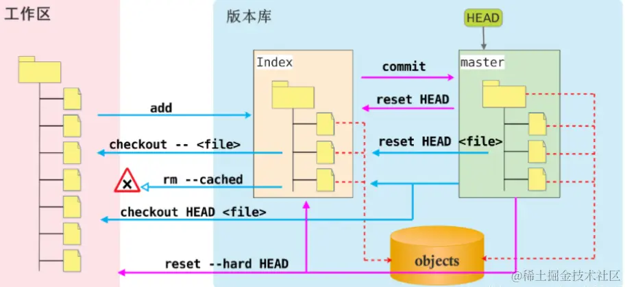 工作区 => 暂存区 => Git仓库
