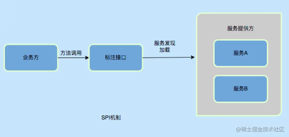 SPI英文全称为Service Provider Interface,是JDK提供的一套用于帮助使用第三方实现的技术工具。表现为JAVA应用层实现服务接口,第三方实现接口,然后通过SPI的方式实现服务调用。 SPI机制主要思想是将装配的控制权移到程序之外,在组件化设计中这个机制尤其重要,其核心思想就是解耦。