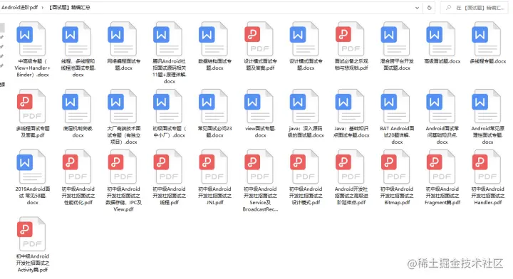 以上内容为金三银四常问的面试题;spi原理与实现零耦合的解析,有关Android开发的面试题及Android进阶技术;可以参考传送直达↓↓↓ :link.juejin.cn/?target=htt…点击查看获取!