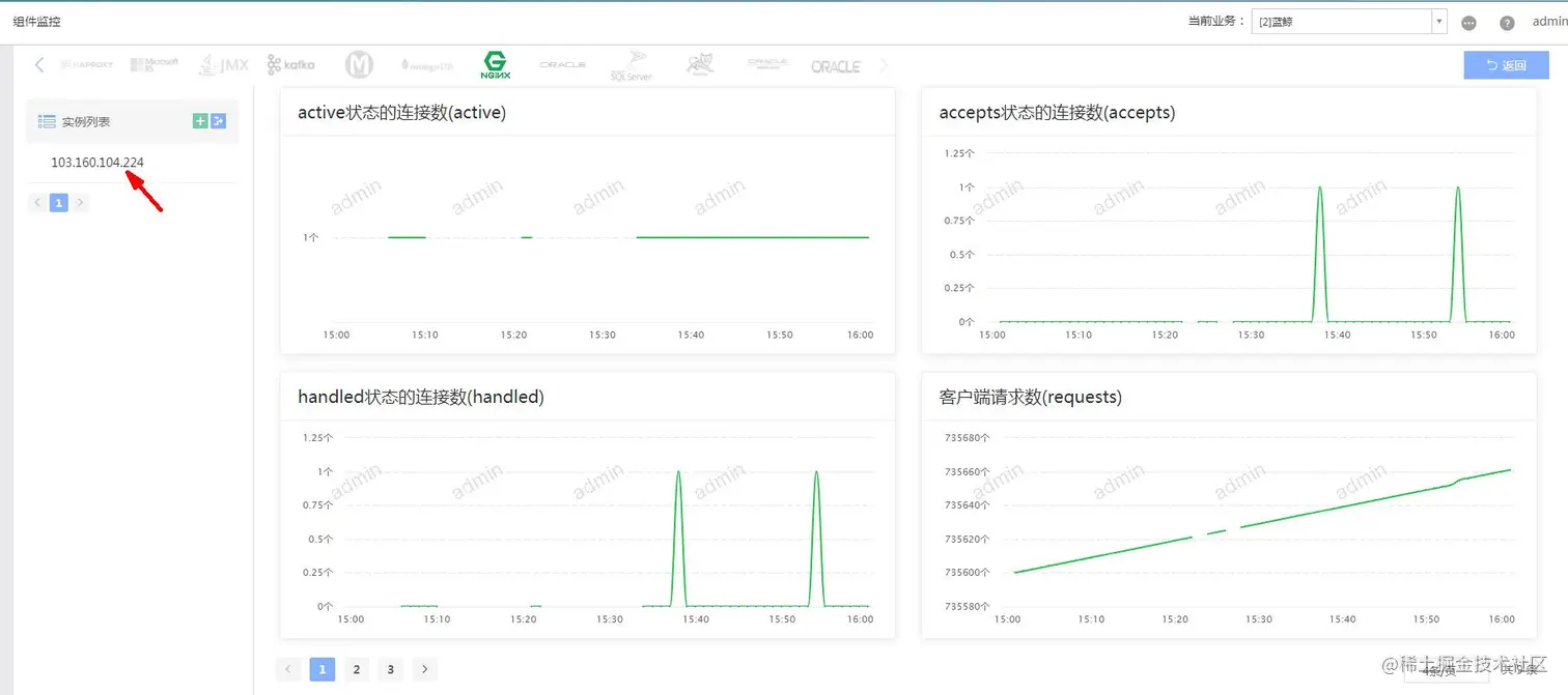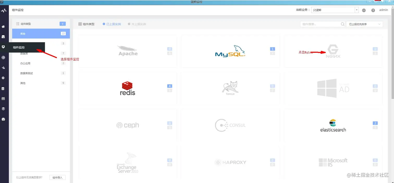 ·首先进入蓝鲸监控,选择组件监控,选择对应的组件点击进入: