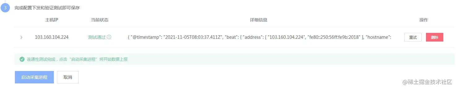 ·选择服务器 → 配置组件采集的参数 → 测试连通性 → 启动采集进程
