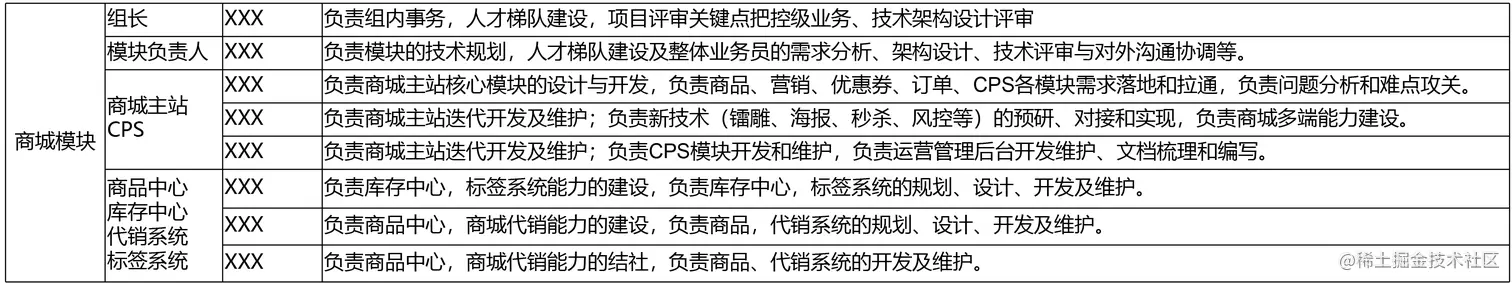 案例:我们团队组织在明确后,很快会确定每个人的工作职责。即使有组内成员有调整,也会及时更新职责说明。