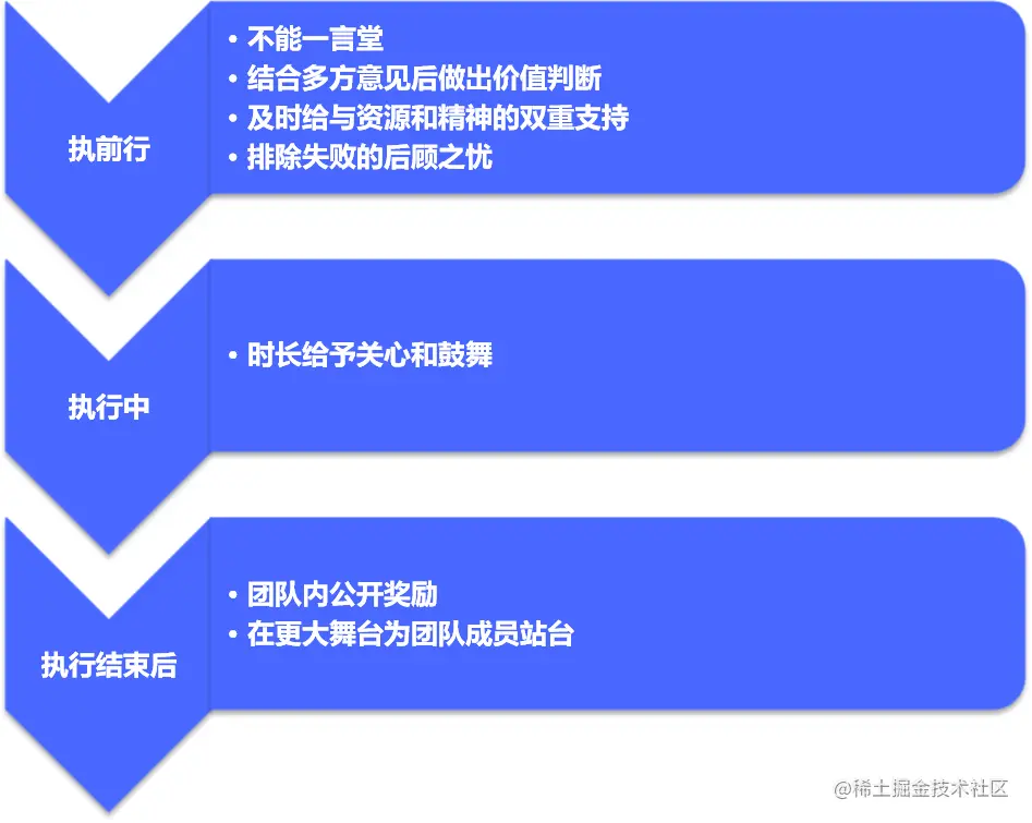 在执行过程中要给与关心,甚至夸张、激情一点给一些士气的鼓舞。成功后荣誉和光环要能及时给到参与其中的小伙伴们。团队内要公开鼓励这种自驱自组织的行为,号召其他人向优秀的人和行为学习。最后在更大的场合,为个人站台,不惜给个人ip和影响力方面做推动。让大家享受这种鲜花掌声。