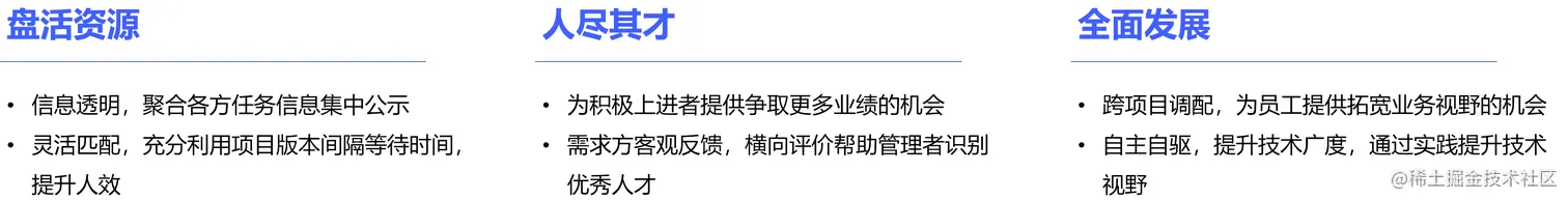 通过伙力平台,把任务分配变管理者被动分配转变成员工主动申领 ,满足大家接触更多技术和业务的诉求,同时实现跨组织、跨项目的人力效能最大化。
