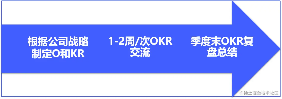 我们团队使用OKR以季度为周期,一共分为三个阶段,如下图所示。