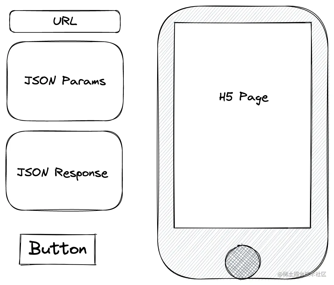 所以在想,做一个平台,在这个平台中可以保存些数据,并且在旁边提供个小窗口,呈现要测试的 H5 网页,如下图所示(画图工具是excalidraw)。