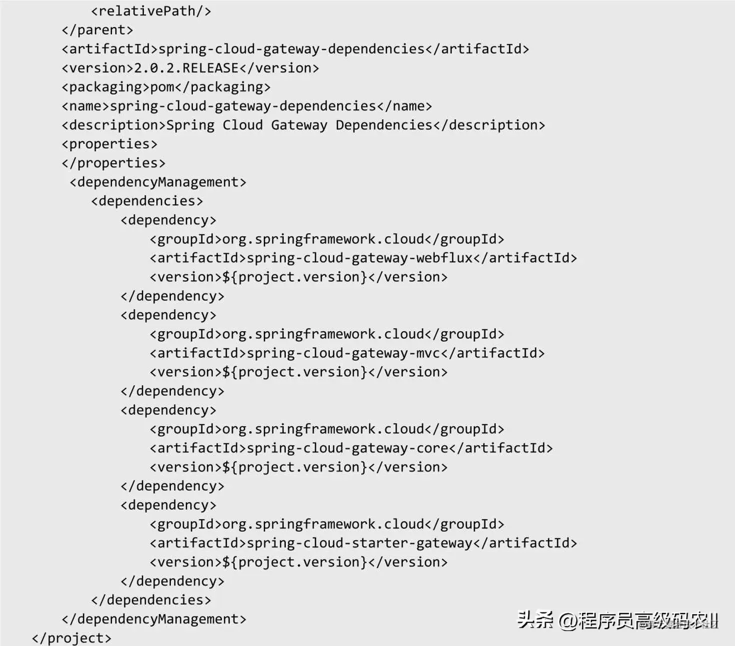 启动Spring Cloud Gateway,需要依赖官方的Starter组件。下面我们从Maven依赖开始,对Spring Cloud Gateway的源码进行解析。