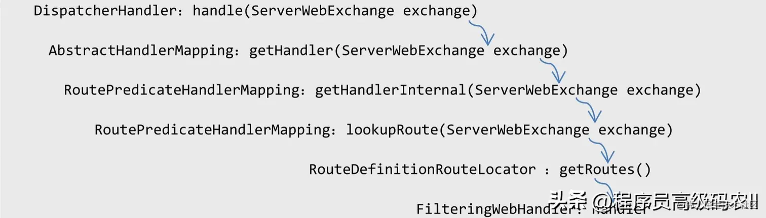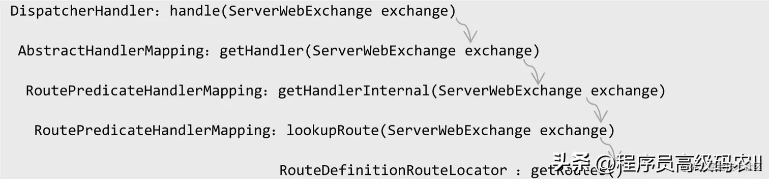 RoutePredicateHandlerMapping的getHandlerInternal方法从RouteLocator获取路由,并存放在ServerWebExchange中,返回webFilter对象,代码如下: