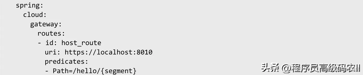 路由断言工厂接收一个参数,根据Path定义好的规则来判断访问的URI是否匹配。配置示例如下: