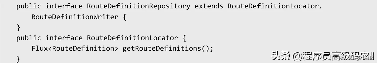 下面是定制化的核心路由动态加载和缓存管理的关键代码,主要通过实现自定义的路由Repository加载类来动态地加载路由,通过继承RouteDefinitionRepository父类来提供路由的配置信息,实现逻辑如下: