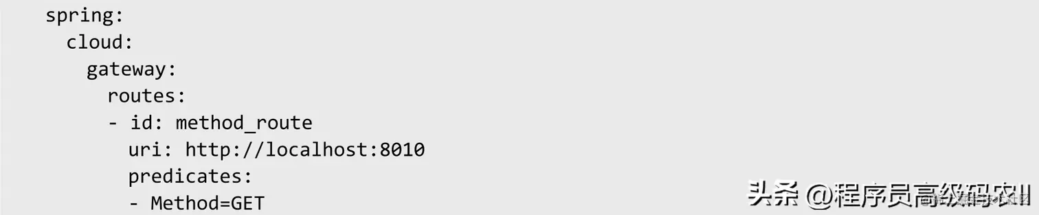 路由断言工厂接收一个参数,即需要匹配HTTP方法。通过POST、GET、PUT、DELETE等不同的请求方式来进行路由。