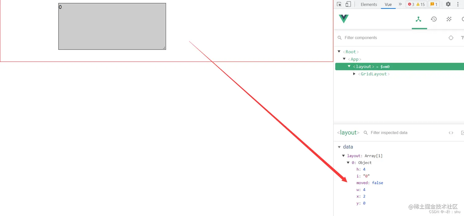 这是gridItem的数据项:{ "x": 0, "y": 0, "w": 2, "h": 2, "i": "0" },包含x、y、w、h、i。