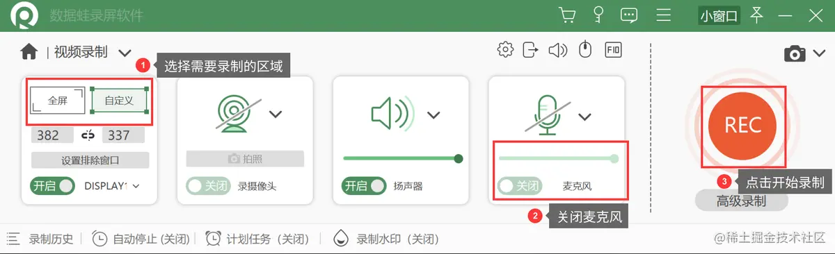 不录外界声音2:数据蛙录屏软件录屏
