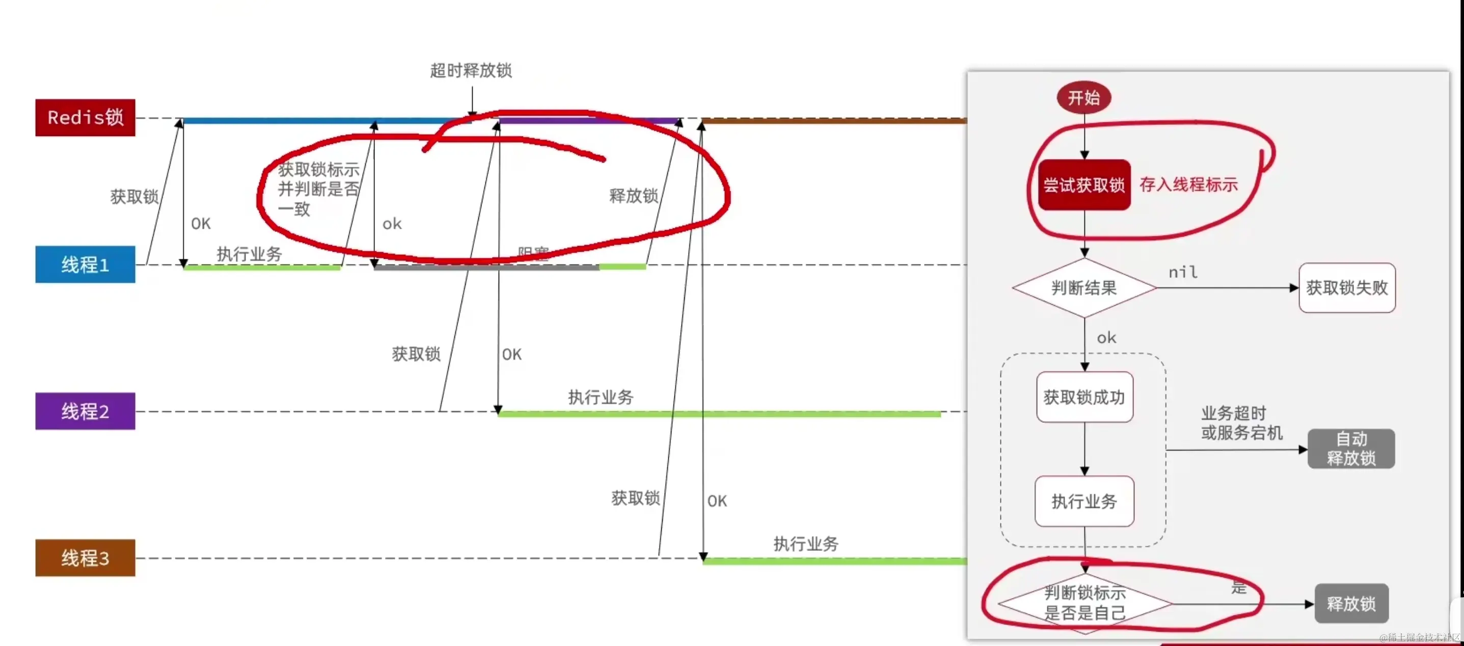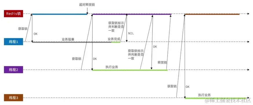 原理:利用setnx的互斥想,利用ex避免死锁,释放锁时判断线程标识