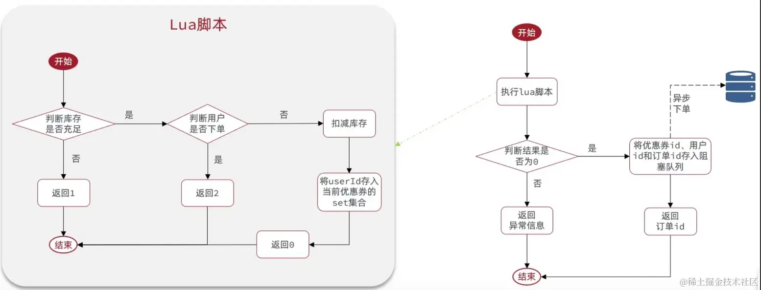 - 判断秒杀资格的逻辑需要原子性,封装在lua脚本中。