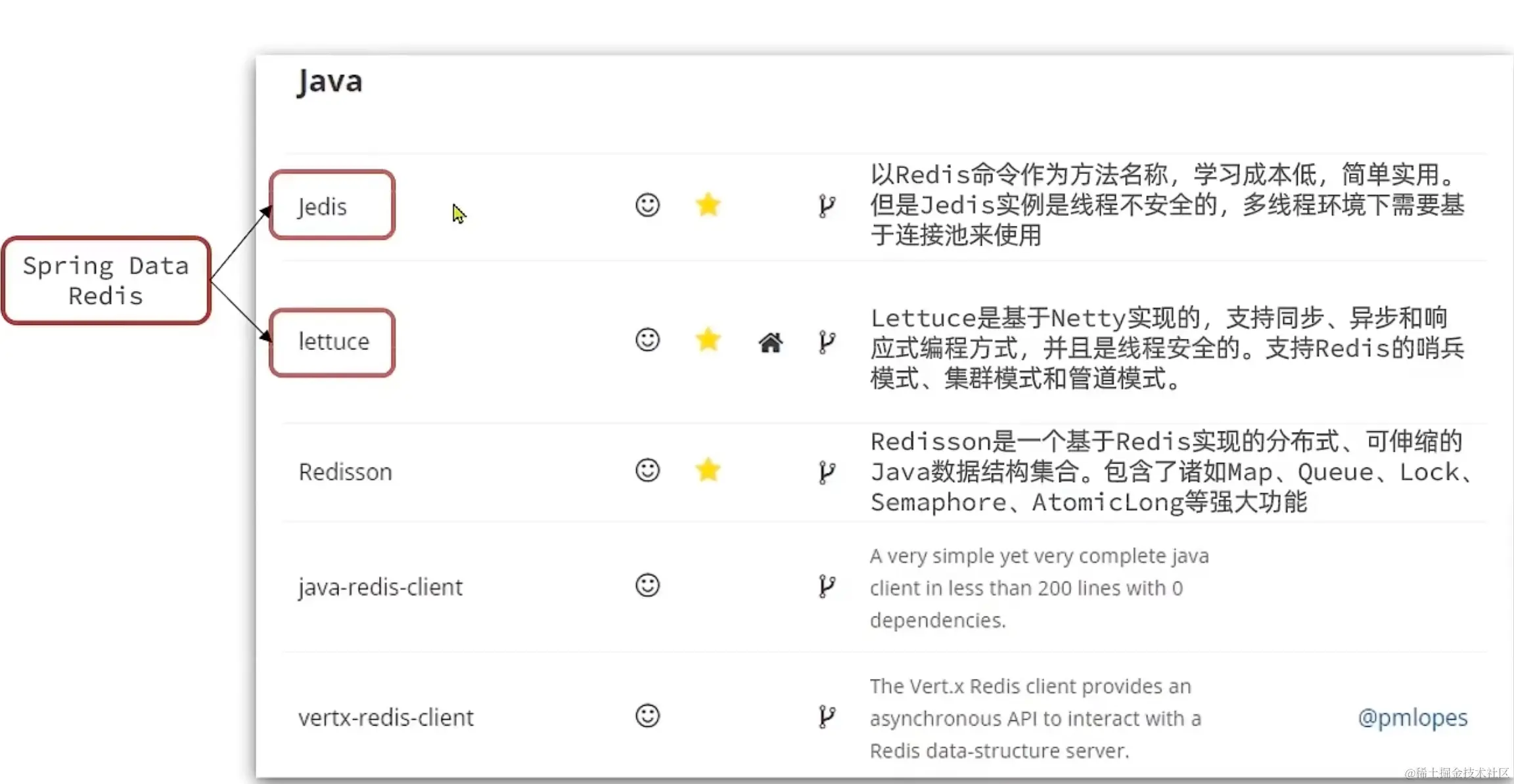 - lettuce与Spring融合最好,基于Netty实现,线程安全