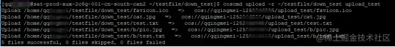 COSCMD 支持大文件断点上传功能,最大可支持上传40TB的单一文件。它不仅支持上传文件,还支持上传文件夹。在上传文件夹时,可通过配置参数来实现忽略某一类文件,支持 shell 通配规则,还支持设置多条规则。