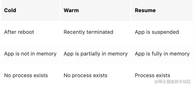 由于系统影响因素,需要我们对齐冷启动测量方式