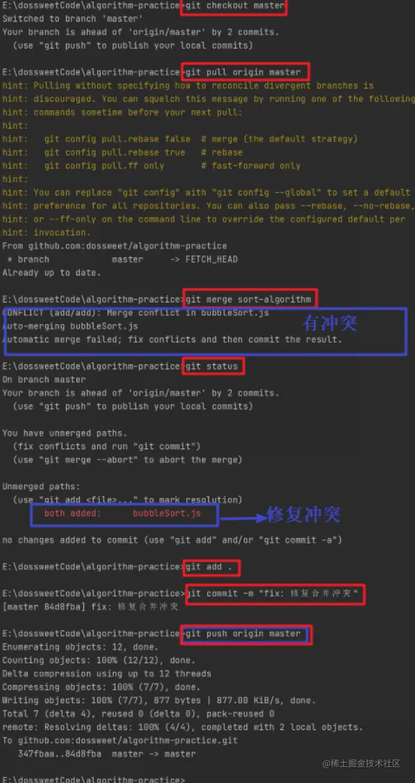 当分支代码被merge后,本地和远程就可以选择删除sort-algorithm这个分支啦!