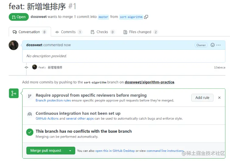 此时代码reviewer就会审查代码并给出意见。如果需要修改代码,就需要开发者本地修改后重新push;如果不需要修改,则reviewer可以merge当前pr到项目主分支。