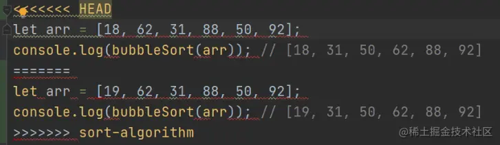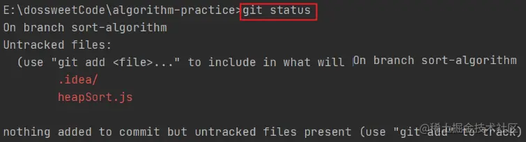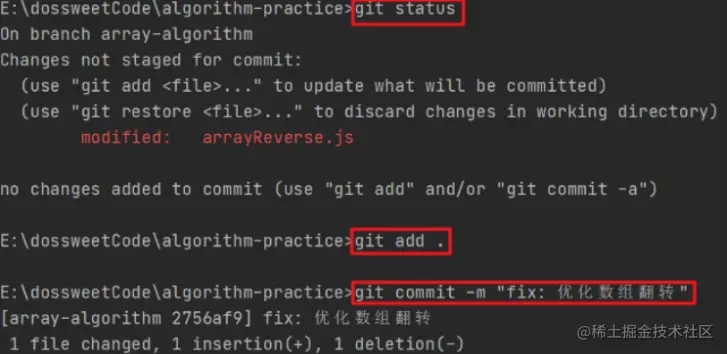 回到我们的项目中,本地切换分支到array-algorithm,小修改一下代码,然后重新执行commit: