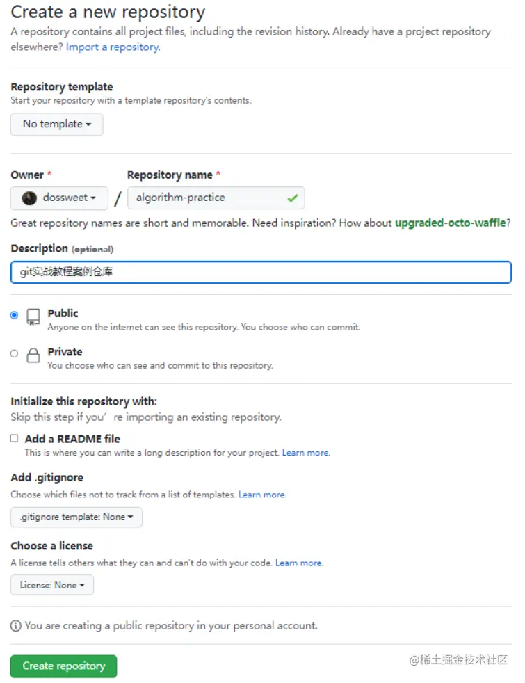 接下来,我们就以协同开发一个前端算法仓库为例开始实战吧!