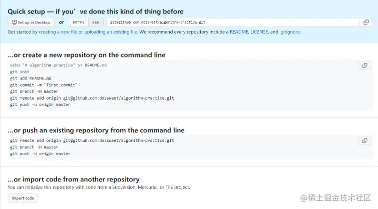 在我们点击Create repository按钮后,就会初始化一个空的云端仓库了。