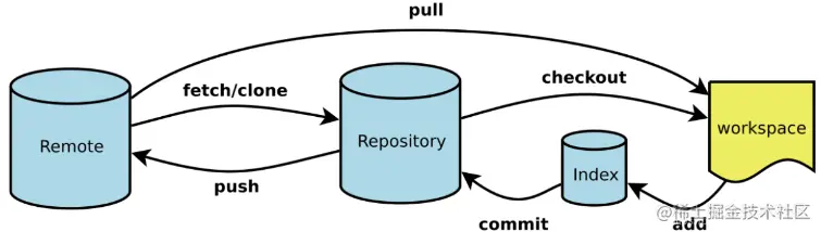 git的工作区示意图如下所示,大家可以先有个印象,我们后面慢慢理解它~