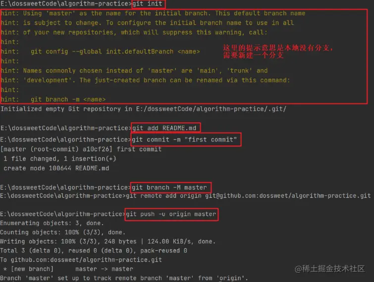 git branch -m master // 本地生成一个master分支,用于后续项目开发
