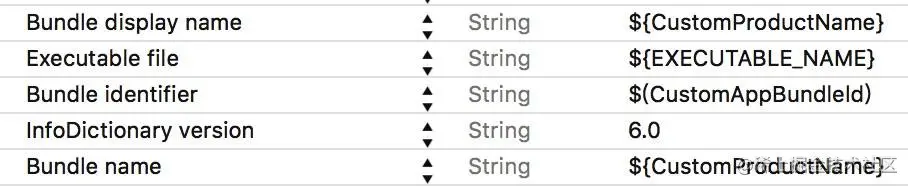 由于我们新添加了2个CustomAppBundleld 和 CustomProductName,这里我们需要把info.plist里面的Bundle display name修改成我们自定义的这个字典。编译过程中,编译器会根据我们设置好的Scheme去自己选择Debug,Release,TestRelease分别对应的ProductName。