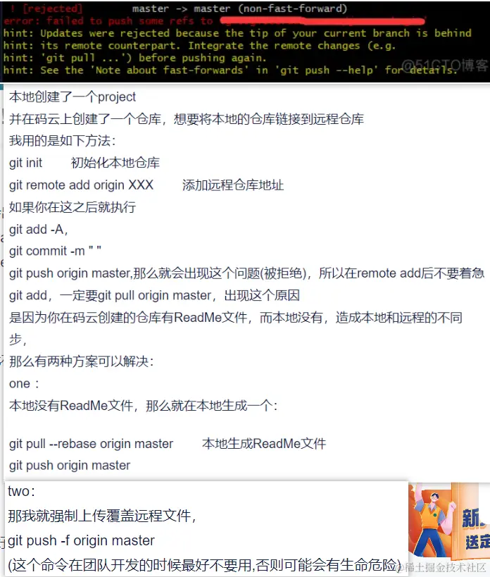 hint: See the 'Note about fast-forwards' in 'git push --help' for details.
