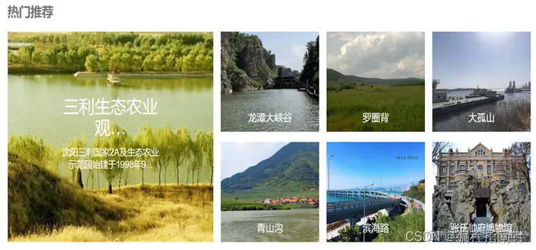 通过设定某一省份,为用户推荐该省份评分靠前的热门景区,此块设置的省份为沈阳。具体效果如下图6.8所示。