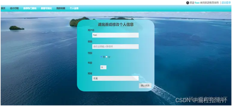 此模块是该系统的核心内容,主要包含热门景点推荐功能、为你推荐功能、猜你喜欢功能、乘车推荐功能、景点推荐功能、热门路线推荐功能。