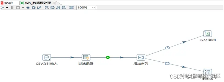 数据预处理的好坏直接影响着该系统数据的准确性,因此这一步也非常重要。在数据能用于该系统的前提下,通过这一方式为数据分析做准备,可以有效的提高分析结果的准确性,这是数据预处理的重要目的。数据预处理主要分为以下四类,数据清理的目的是对异常数据进行处理,例如处理对该系统无用或造成干扰的数据;数据集成的目的是通过拼接技术扩大数据集;数据变化的目的是对数据进行规范化处理以达到使用方便的效果;数据规约的目的是通过一些处理方法减少冗余信息,提高数据整体的可靠性。下图5.2是该系统利用kettle工具对爬取到的数据进行数据预处理的操作图。