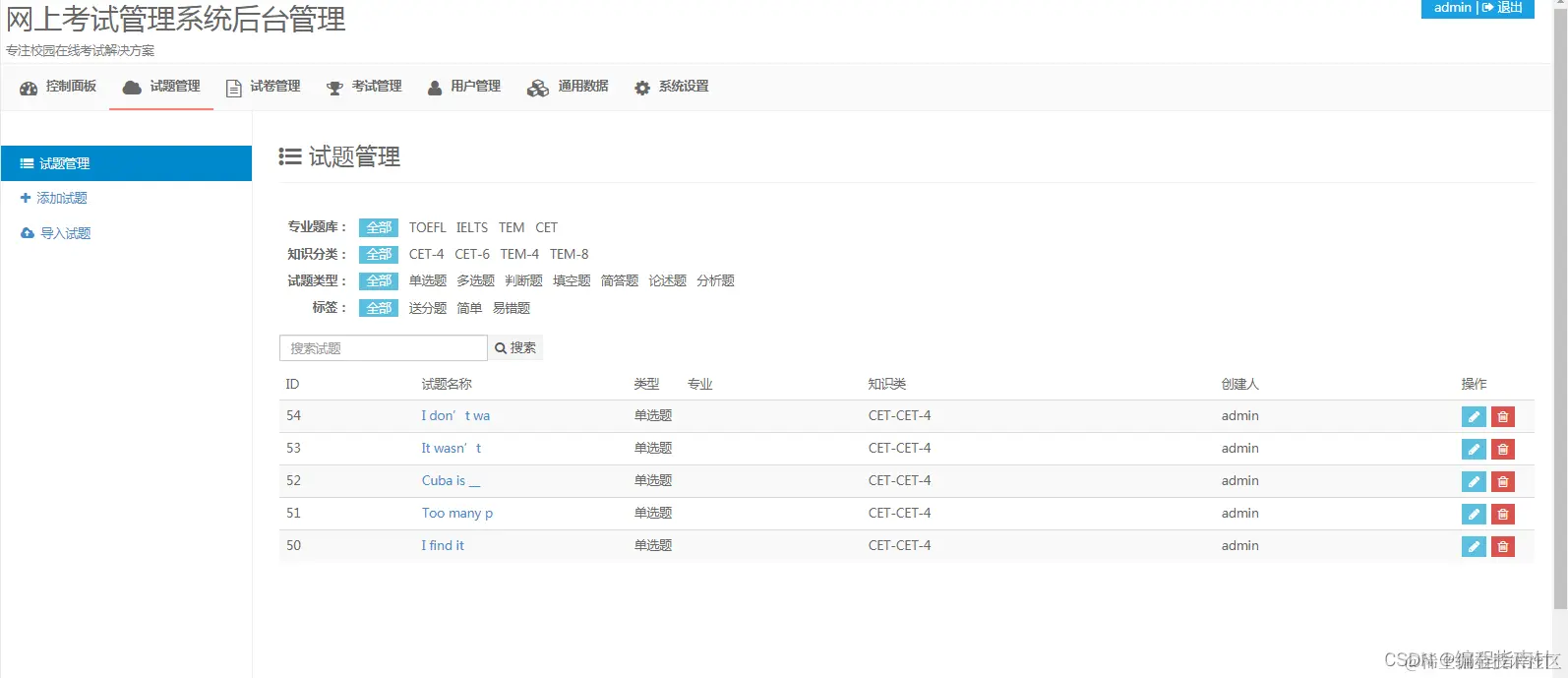 试题管理