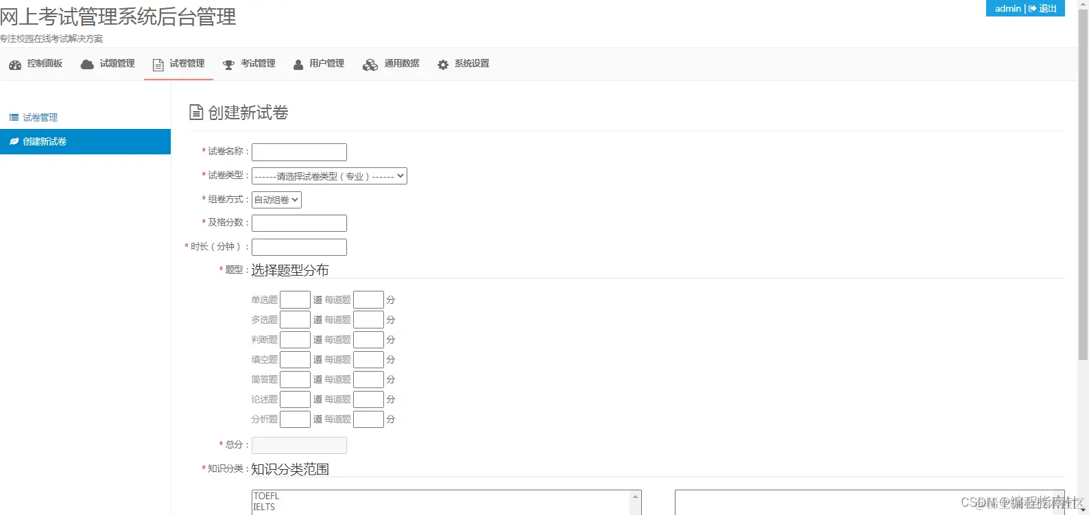 创建试卷