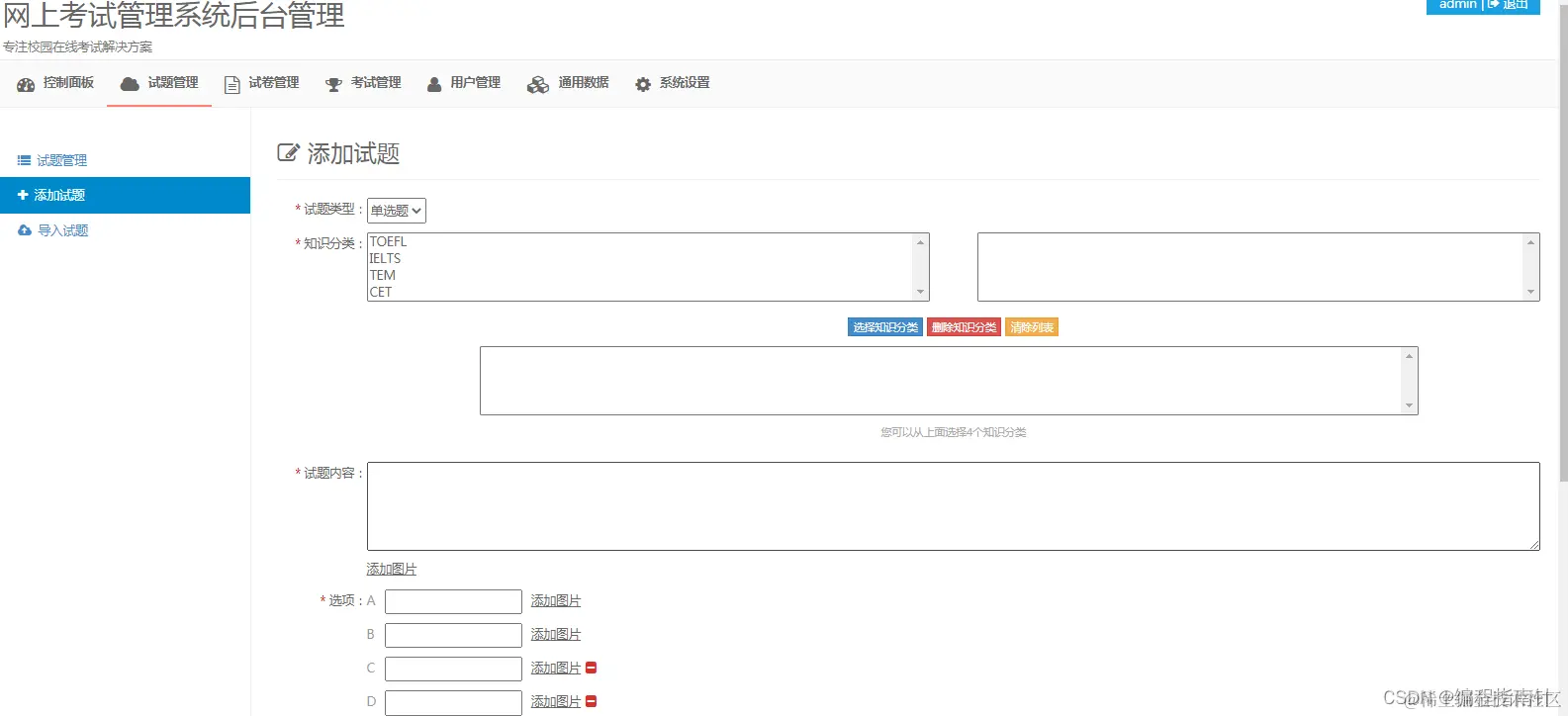 * 添加试题