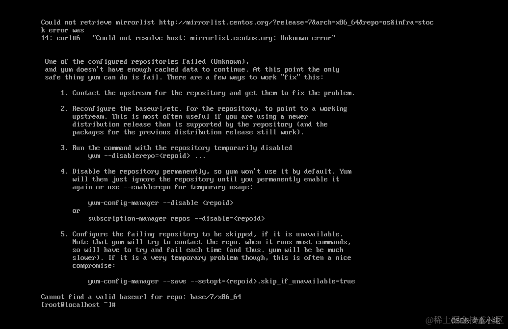 使用yum无法检索到镜像列表,解决方法如下。
