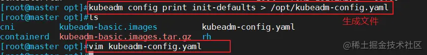 kubeadm config print init-defaults > /opt/kubeadm-config.yaml
