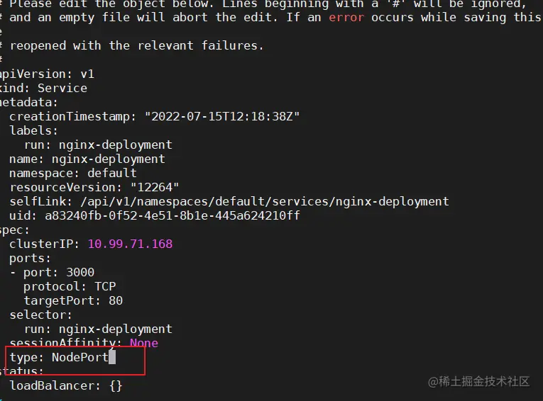 kubectl edit svc nginx-deployment