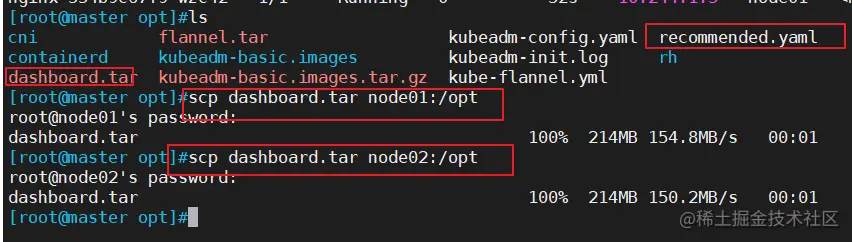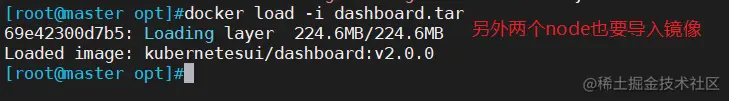 //所有节点上传dashboard镜像 dashboard.tar 到 /opt 目录,master节点上传kubernetes-dashboard.yaml文件
