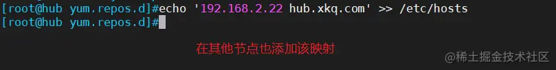 echo '192.168.2.22 hub.xkq.com' >> /etc/hosts