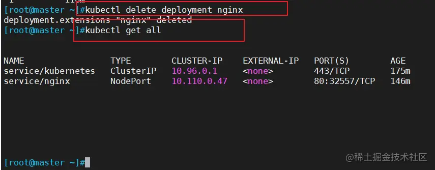 //在master节点上删除之前创建的nginx资源