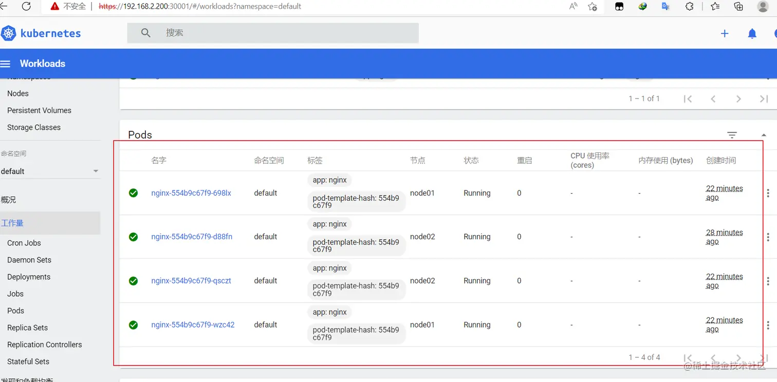 https://192.168.2.200:30001/ #使用Node1或者node2访问
