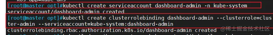kubectl create clusterrolebinding dashboard-admin --clusterrole=cluster-admin --serviceaccount=kube-system:dashboard-admin
