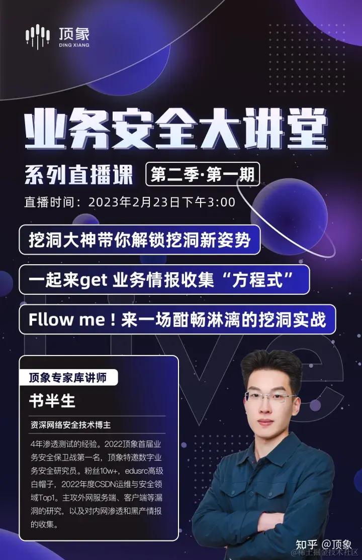 首期我们特别邀请到了安全圈内大佬书半生和大家讲讲关于挖洞那些事儿——《红队外网打点与情报收集策略》。