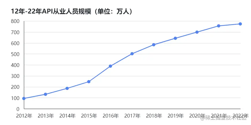 遭遇了长达3年的疫情冲击,国内互联网行业面临了有史以来最大寒冬,很多公司在不断裁员甚至面临倒闭,很多人被迫失业。即使如此,API从业人员规模仍然在增长,达到了773万人;但是相比于前几年,增速有所放缓。