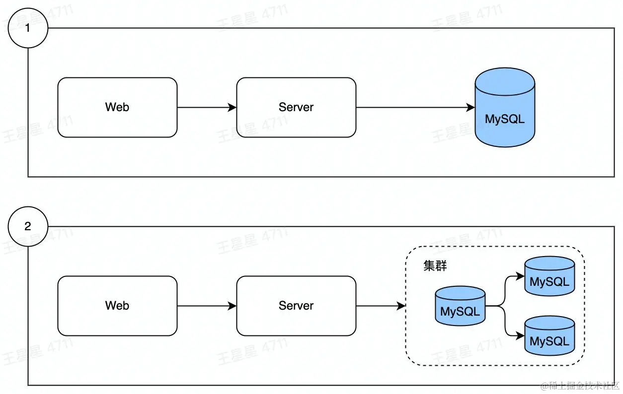 由于数据不断地增长,读写数据压力不断地增加,数据库发生了以下演变: